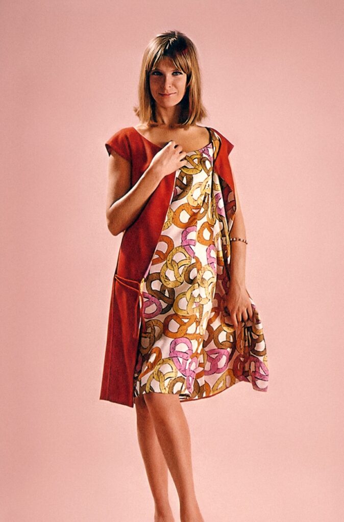 Girl in a silk pretzel dress designed by Stephen Bruce and Leila Larmon for the Serendipity 3 fashion collection, 1964, Photograph courtesy of Stephen Bruce © The Andy Warhol Foundation for the Visual Arts, Inc. c/o Pictoright Amsterdam 2026