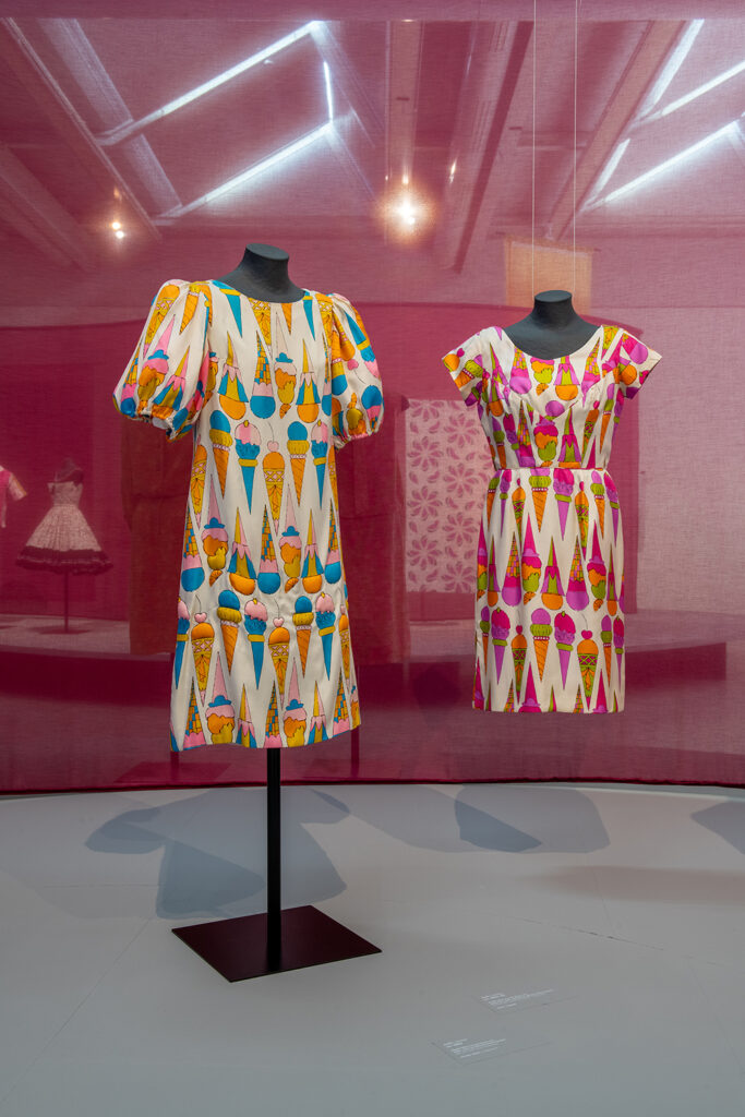 Andy Warhol, The Textiles toont een minder bekende kant van Andy Warhol en is voor het eerst in Nederland te zien. Nog vóór zijn wereldwijde faam als pionier van de Pop Art ontwierp Warhol in de jaren vijftig speelse en experimentele stoffen voor mode en interieur. Met herhaling, krachtige lijnen en speelse motieven – van ijscoupes en toffee-appels tot kleurrijke knopen, gesneden citroenen, pretzels en springende clowns – verkende hij hoe beeldtaal verandert wanneer die wordt vermenigvuldigd, gedragen en onderdeel wordt van het dagelijks leven.